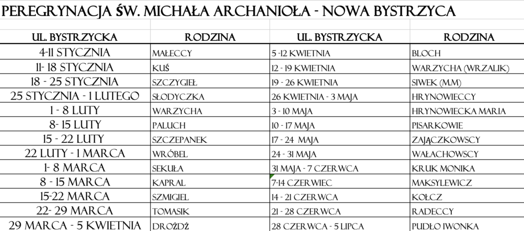 Kolejność peregrynacji w Nowej Bystrzycy: